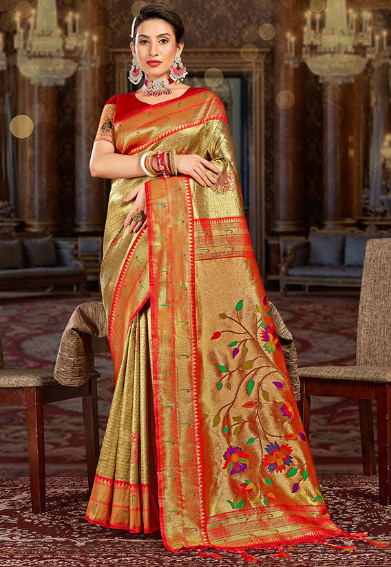 Golden Woven Paithani Silk Saree for Festival