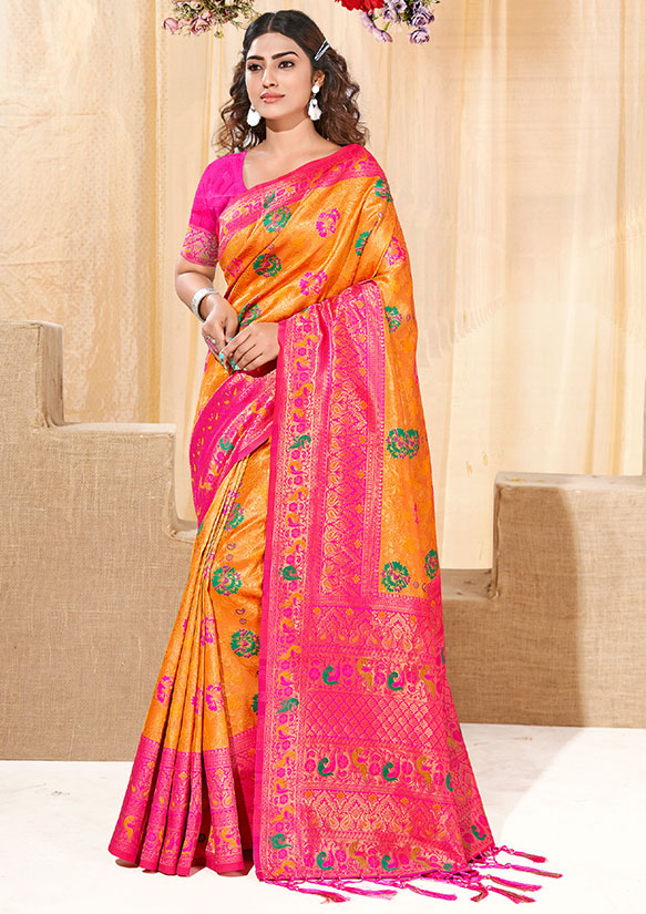 Golden Yellow Woven Kanjivaram Silk Saree for Festival for Festival
