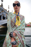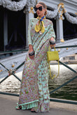 Mint Blue Organza Parsi Handloom Weaving Party Wear Saree