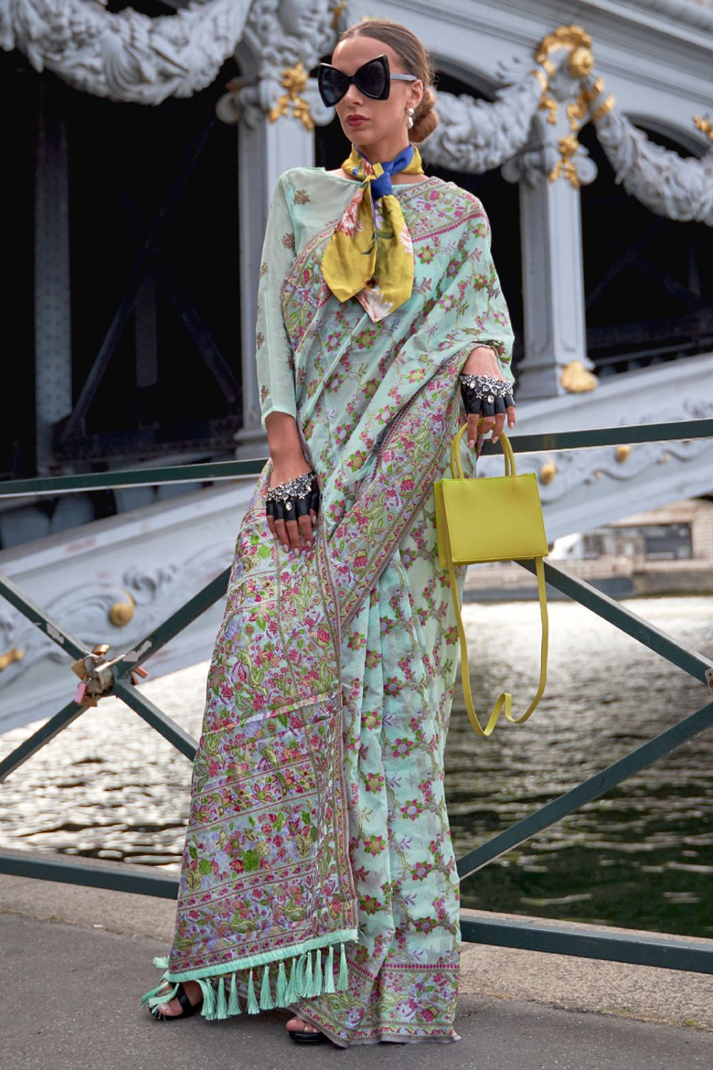 - Saree color - Mint blue.