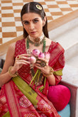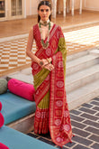 Olive Green Foil Print Patola Design Silk Saree