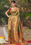 Olive Green Paithani Silk Zari Weaving Work Saree