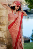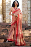 Peach Pure Handloom Katan Saree with Woven Pallu