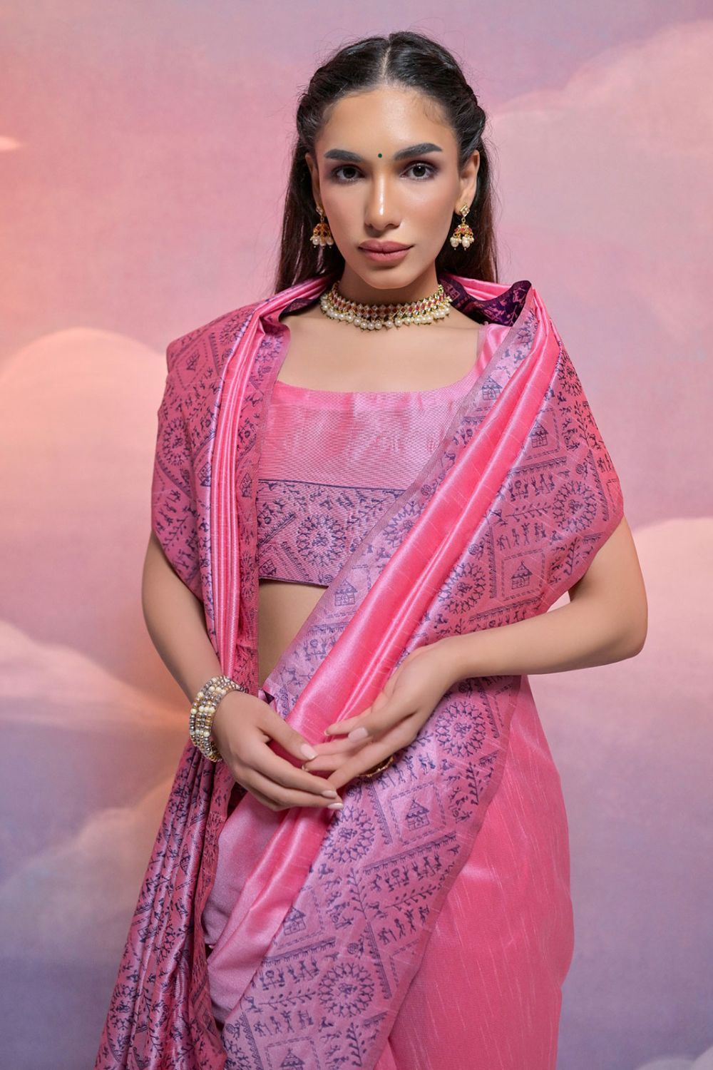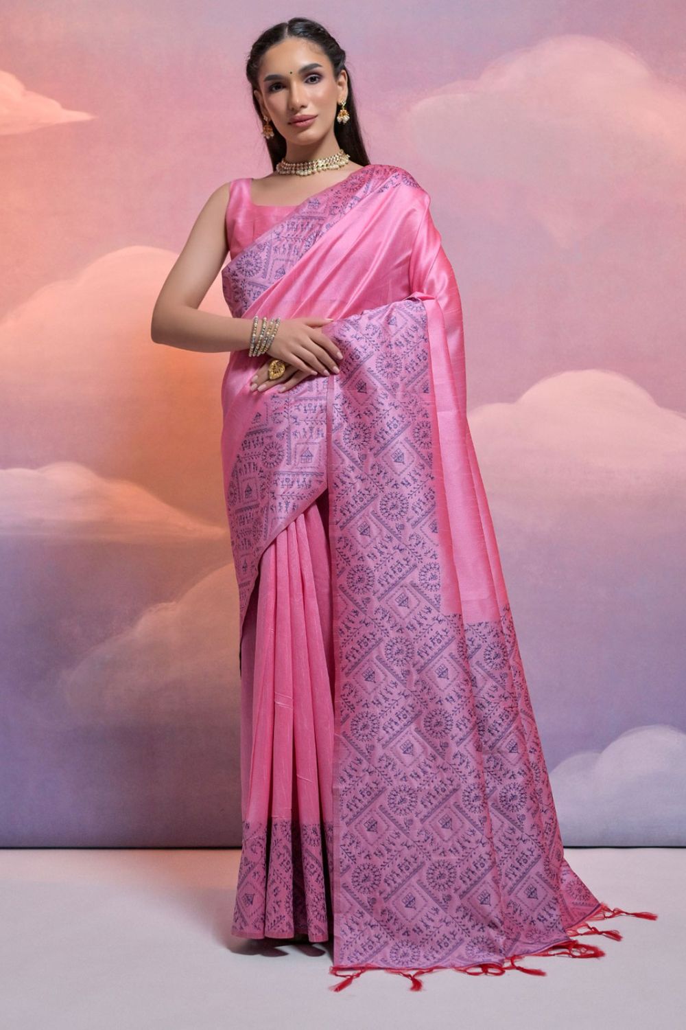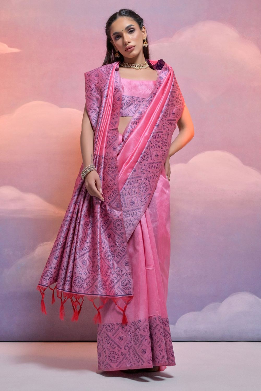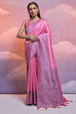 Pink Handloom Raw Silk Woven Party Wear Saree
