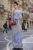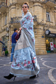 Powder Blue Brasso Handloom Woven Festival Wear Saree