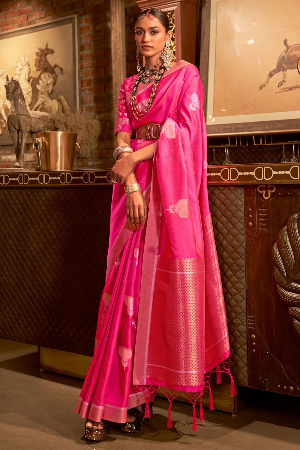 Rani Pink Handloom Weaving Silk Party Wear Saree