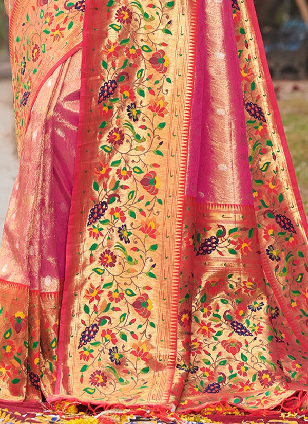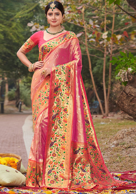 Rani Pink Paithani Silk Zari Weaving Work Saree