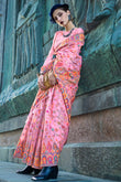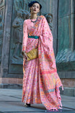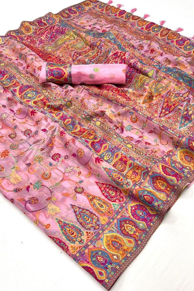 Rose Pink Kashmiri Handloom Weaving Organza Festival Wear Saree